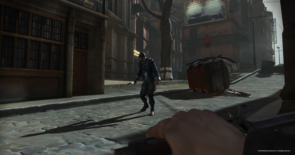 Es posible terminarse Dishonored sin matar a nadie, y es que aunque nuestro objetivo sea matar a alguien, siempre habrá métodos alternativos no letales para borrarlos del mapa. Además, aunque los mapas de Dishonored no son tan grandes como los de Thief, dispondremos de varias rutas por las que llegar a nuestro objetivo. No sentiremos la sensación de que existe un camino y que además hay otro alternativo como sí ocurría en Deus Ex: Human Revolution o en el reciente Thief; aquí sentiremos que somos nosotros los que realmente guiamos nuestros pasos y no los de otro. Recuerdo que en Thief no existía el concepto de «sitio accesible» y «sitio no accesible», pero en Dishonored sí existe, limitando un poco nuestros pasos pero no enturbiando el resultado final.
