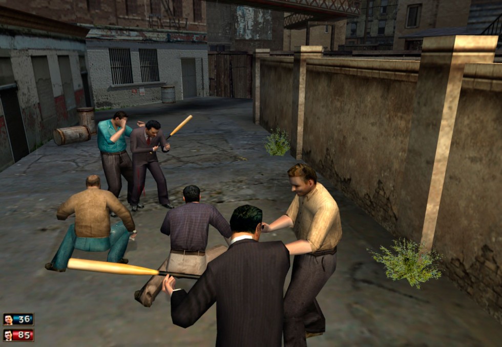 Controlaremos a nuestro protagonista en tercera persona y los controles son los de siempre, con el añadido de que podremos rodar lateralmente para esquivar disparos a lo Max Payne pero de un modo más real. Tendremos barra de vida y ésta mermará por completo con tan solo unos disparos, por lo que ir a lo Chuck Norris no es una opción en el juego si no queremos volver a repetir todo desde uno de los últimos puntos de guardado de los que tiene el juego. En algunos lugares, habitualmente en baños o lugares en los que estarían en la vida real, encontraremos botiquines con los que curarnos, pero son escasos y no repondrán más de un 50% de nuestra vida, menos de lo que nos quitará un certero disparo de escopeta. Pese a que la dificultad de los tiroteos pueda parecer excesiva, se adapta perfectamente al teclado y al ratón y si nos tomamos las cosas con calma, saldremos airosos, no teniendo excesivas dificultades hasta, como es obvio, el final del juego. Éste fue también uno de los primeros juegos que nos impedía llevar un arsenal de armas debajo del abrigo, pudiendo portar un arma grande en la mano, otra debajo del abrigo y todos los tipos de pistolas que queramos. Mediante un pequeño inventario podemos parar el tiempo y cómodamente pensar el tipo de arma que es más adecuada para la situación, pero si lo preferimos, podemos utilizar al rueda del ratón. El arsenal del juego se compone de los modelos de pistola más conocidos de la época y entre otra armas, la clásica Thompson 1928, el mítico rifle M1903 Springfield, sin olvidarnos de las granadas, los cócteles molotov y varios tipos de arma cuerpo a cuerpo como el cuchillo, el bate de béisbol y elementos que nos encontraremos como tuberías o tablones de madera.