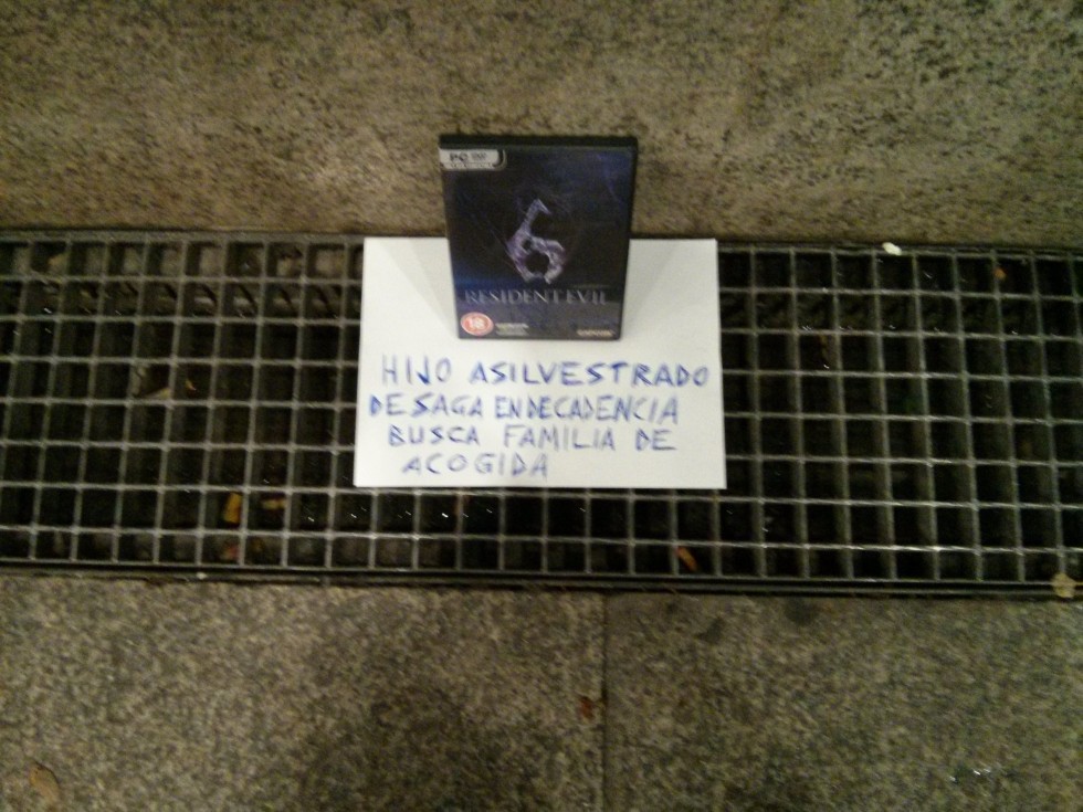 Uno de nuestros redactores ha decidido regalar su copia de Resident Evil 6 al primero que pase por cerca de la entrada del centro comercial e Ourense y lo quiera, y es que lo de pilotar un helicóptero a base de QTEs poco después de comenzar el juego pudo con él, por lo que no se le ocurrió otra cosa que colocarlo en a calle para que algún alma caritativa de buen corazón le haga un hueco en su estantería.